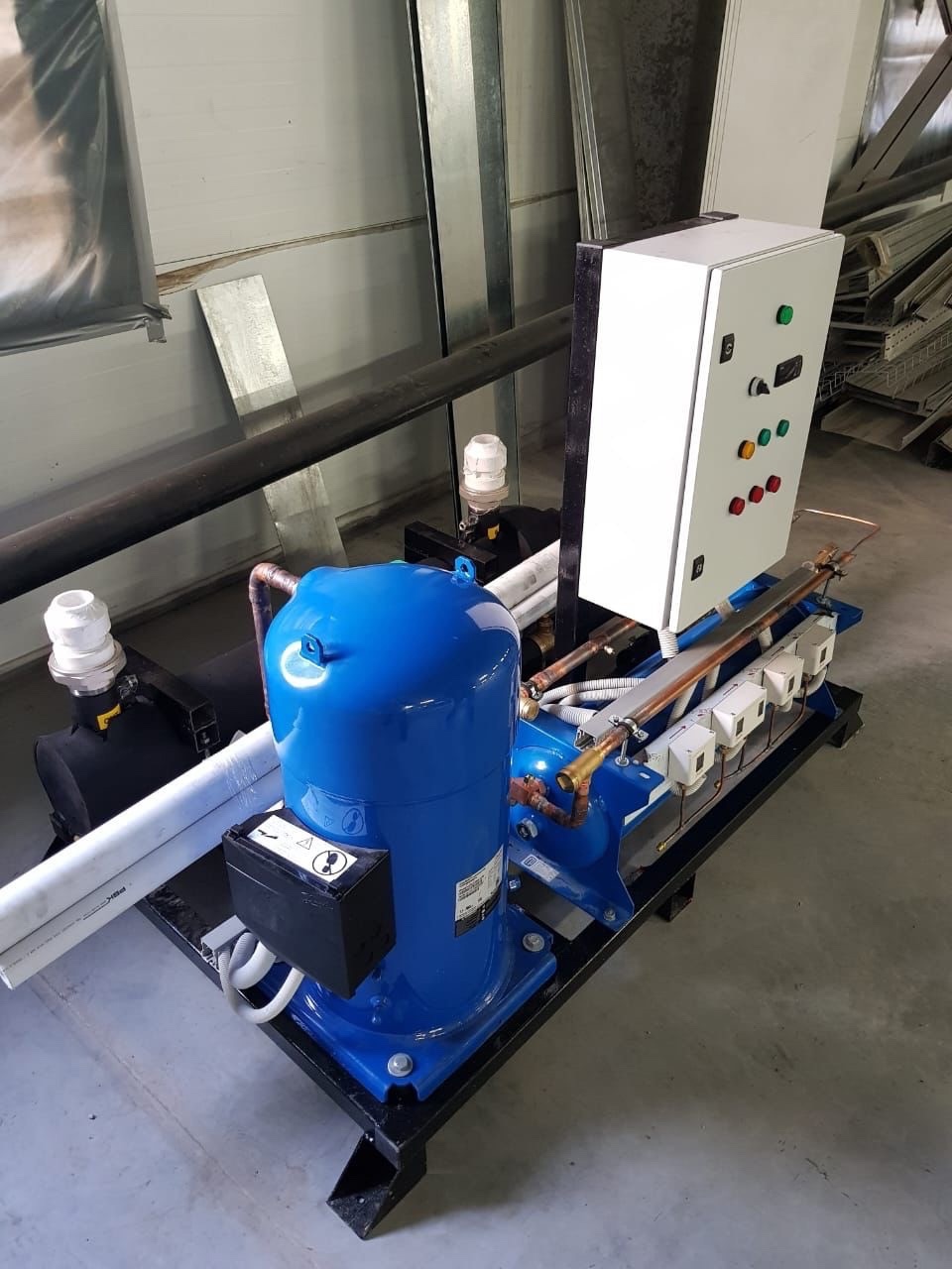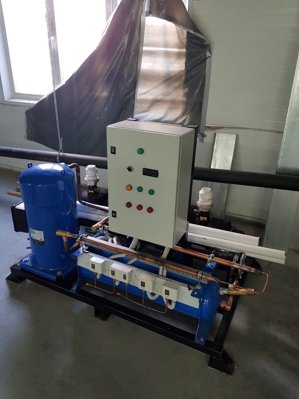 Произвели и смонтировали однокомпрессорный чиллер охлаждения воды для полипропиленового завода.